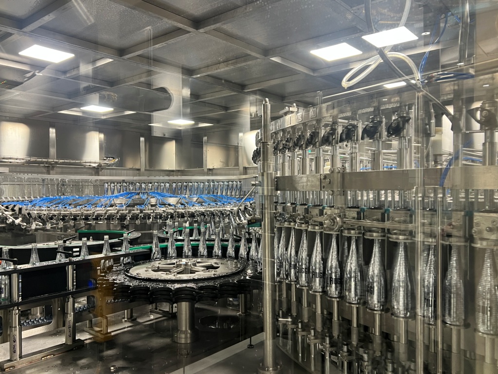Línea VIDRIO de 20.000 bph: Una línea VAP (vidrio de un solo uso) de alta eficiencia para manejar tanto los formatos clásicos FIUGGI Heritage (1000ml) como los nuevos formatos HORECA Luxury (250ml, 500 ml, 750ml, 1000ml). La configuración incluye: