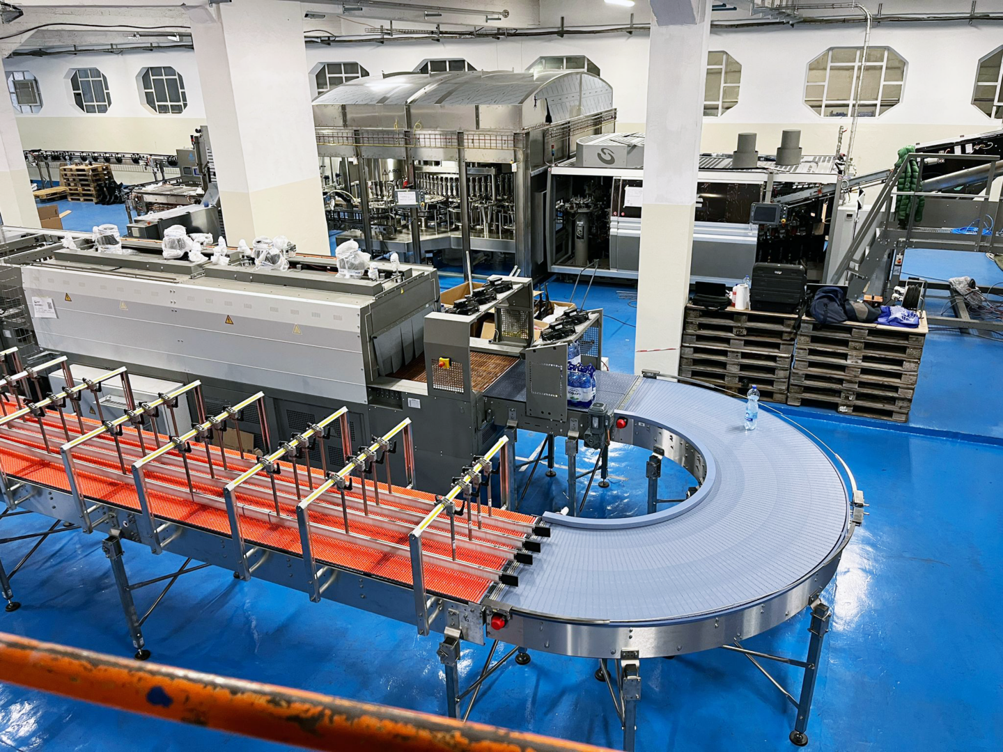 Una curva modular en las cintas transportadoras de botellas, fardos o paquetes es un componente fundamental, utilizado para cambiar la dirección del flujo de materiales a lo largo de la línea de manera eficiente y precisa. Este tipo de curva está compuesto por secciones modulares que permiten una mayor flexibilidad y adaptabilidad en comparación con las curvas tradicionales.
