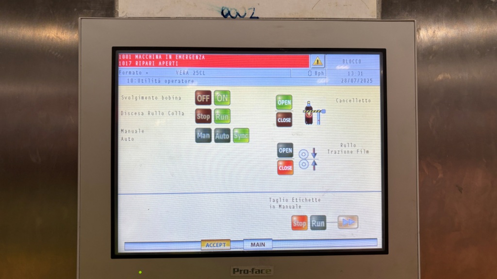 Etichettatrice bottiglie PET Sacmi Opera – usata revisionata. Scopri la nostra etichettatrice bottiglie PET ad alte prestazioni, ideale per linee produttive fino a 30.000 BPH. Questa etichettatrice Sacmi Opera applica etichette OPP con colla a caldo e garantisce un cambio automatico delle bobine rapido e sicuro. Dotata di PLC Siemens, è disponibile usata revisionata o vista e piaciuta, con possibilità di fornirti anche la lista ricambi compatibili. Perfetta per chi cerca affidabilità e qualità nell'etichettatura delle bottiglie PET. Scopri le altre etichettatrici usate