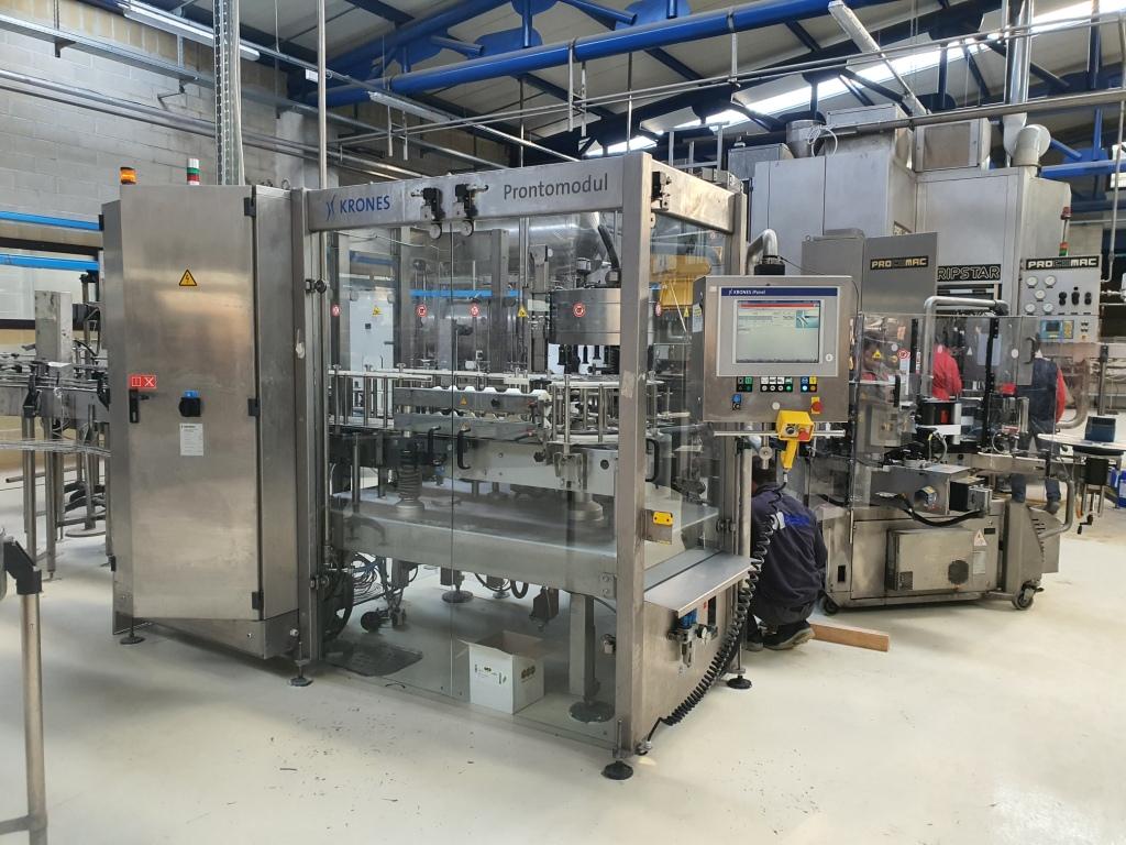 I lavori di ottimizzazione di layout hanno comportato lo spostamento di una soffiatrice SIPA e l’adattamento dei nastri ad aria. Inoltre, abbiamo sostituito un’etichettatrice a carta con un’etichettatrice usata-revisionata BBM, dotata di etichette OPP. Conseguentemente, sono stati aggiornati anche i nastri di trasporto delle bottiglie in entrata e uscita. Per far spazio alla nuova etichettatrice, abbiamo rilocato la confezionatrice SMI e i relativi nastri di alimentazione e scarico, oltre un fasciatore bancali. Abbiamo fornito una piattaforma girevole e dei nastri di trasporto bancali. Inoltre, abbiamo rivisto la gestione e l’automazione dei nastri di trasporto, aggiornando il software esistente. La linea ottimizzata e rilocata è una linea PET che corre a una velocità media di 14.000 bottiglie all’ora e che lavora su formati da mezzo litro, litro e mezzo e due litri.